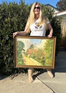 Astrid Cybele Møller holds the only surviving heirloom from their family home in Denmark- a painting her grandmother rescued before Nazis burned the house to the ground during World War II